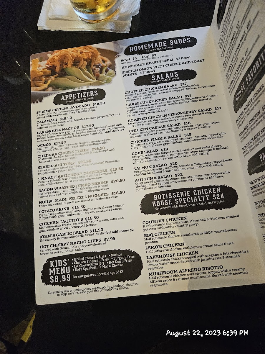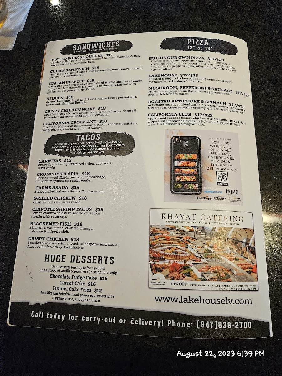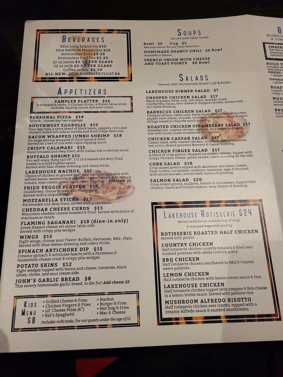 The Lakehouse Restaurant Menu also offers a range of sides, appetizers, and desserts to complement your meal, ensuring every visit is a memorable one. The relaxed atmosphere makes it a perfect spot for friends and family to come together and enjoy a great meal.