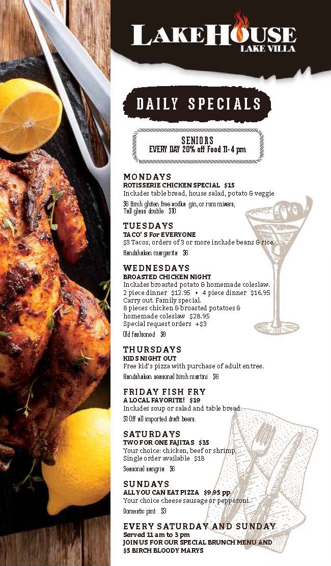 At the heart of Lake Villa, you'll find a delightful dining experience at Lakehouse Restaurant Menu. Whether you’re looking for a relaxed evening or a celebratory meal, the menu is packed with a variety of fresh, flavorful options. The focus is on hearty, delicious meals prepared with the finest ingredients, all while taking inspiration from classic American favorites and local specialties.